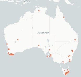 Abb. 5: Elaphomyces spec. Vorkommen bzw. Fundorte in Australien. Quelle: bie.ala.org.au/
